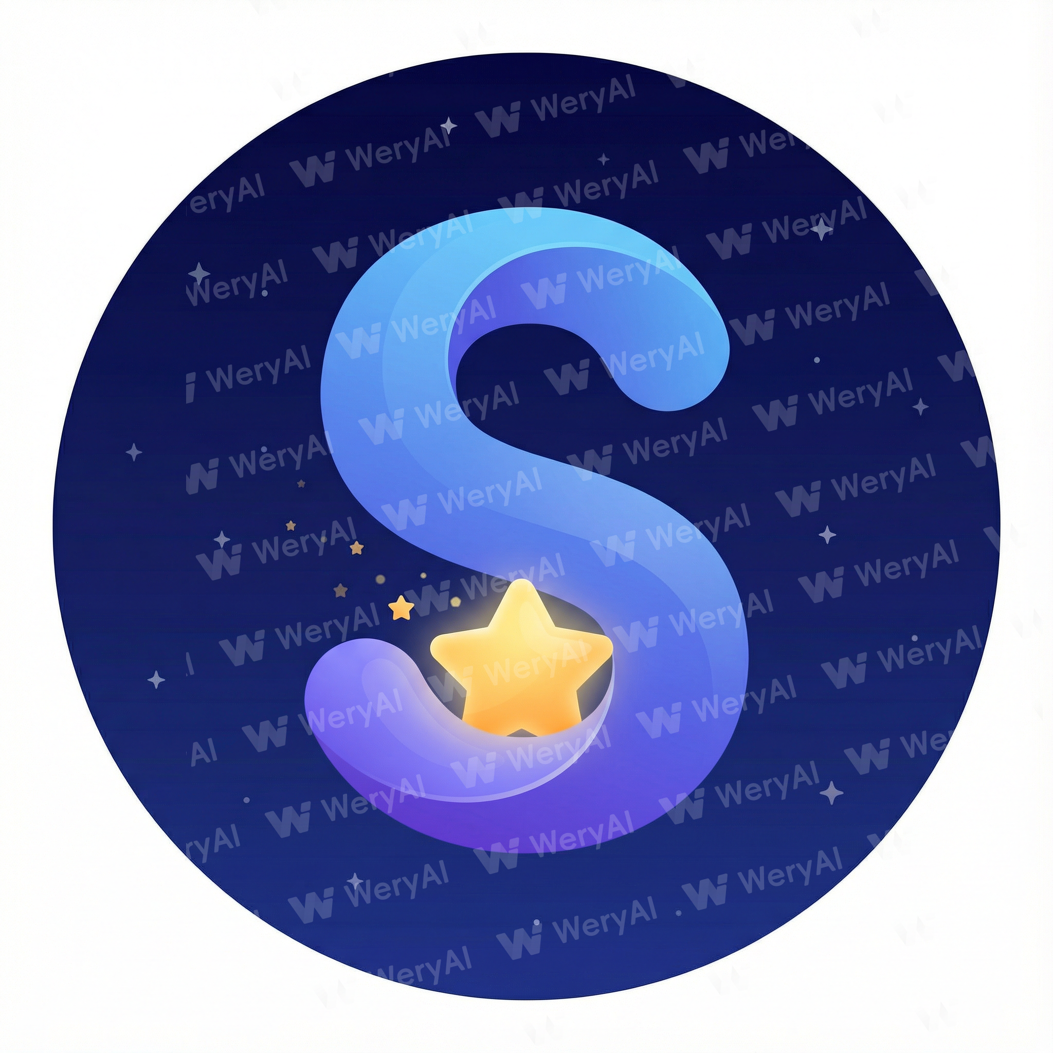 Font style design, combining a capital 'S' with a star icon, minimalist, representing 'picking stars', full and balanced, app icon.