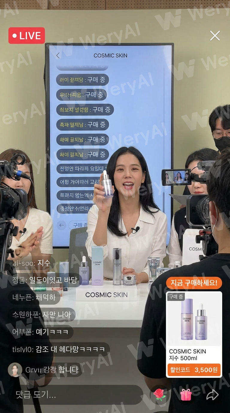 A screen showing products being sold in live commerce