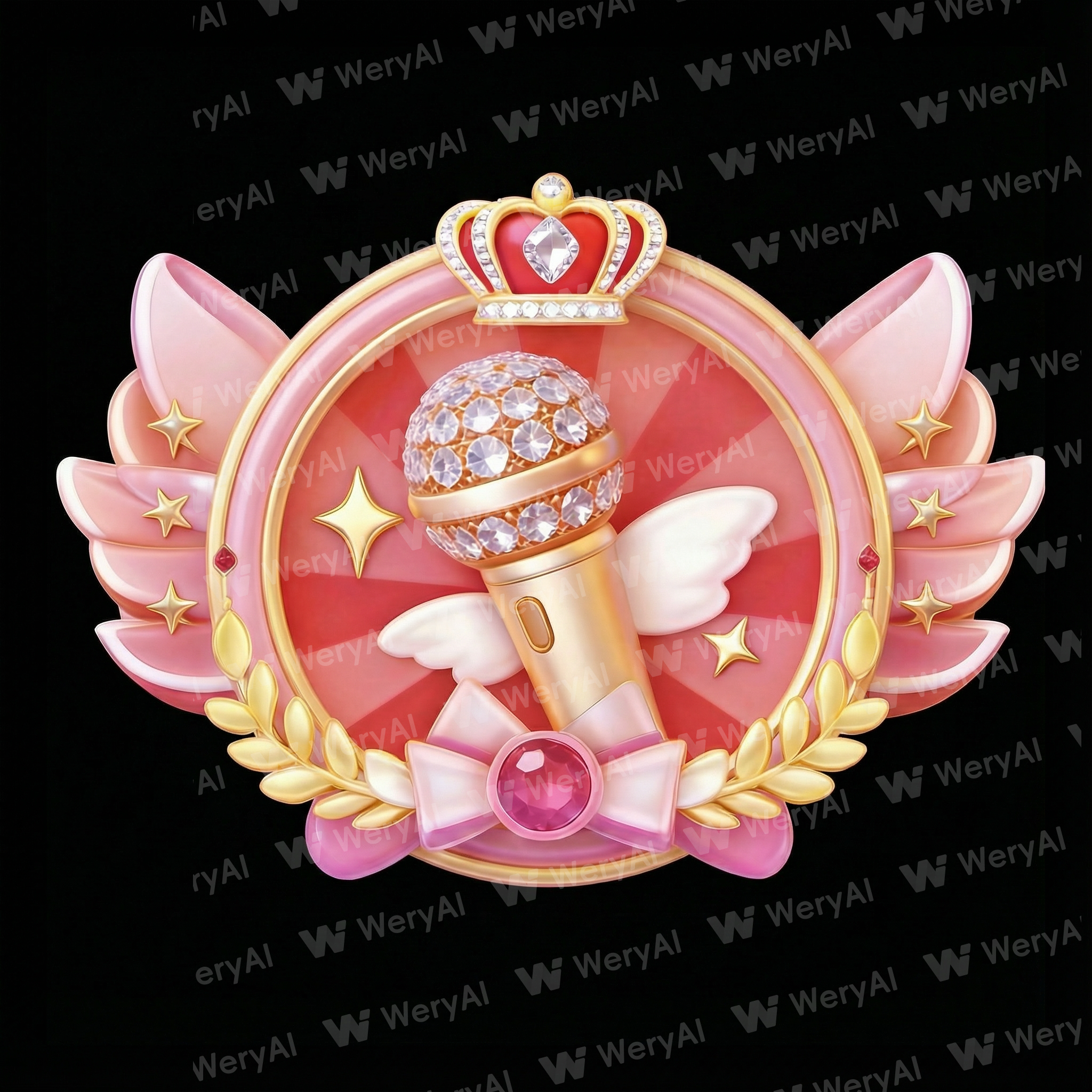 Based on the image, generate a similar icon: remove the bottom-most border, change the square background behind the microphone into a circle, add the missing wing on the right side, and use a pure black background.