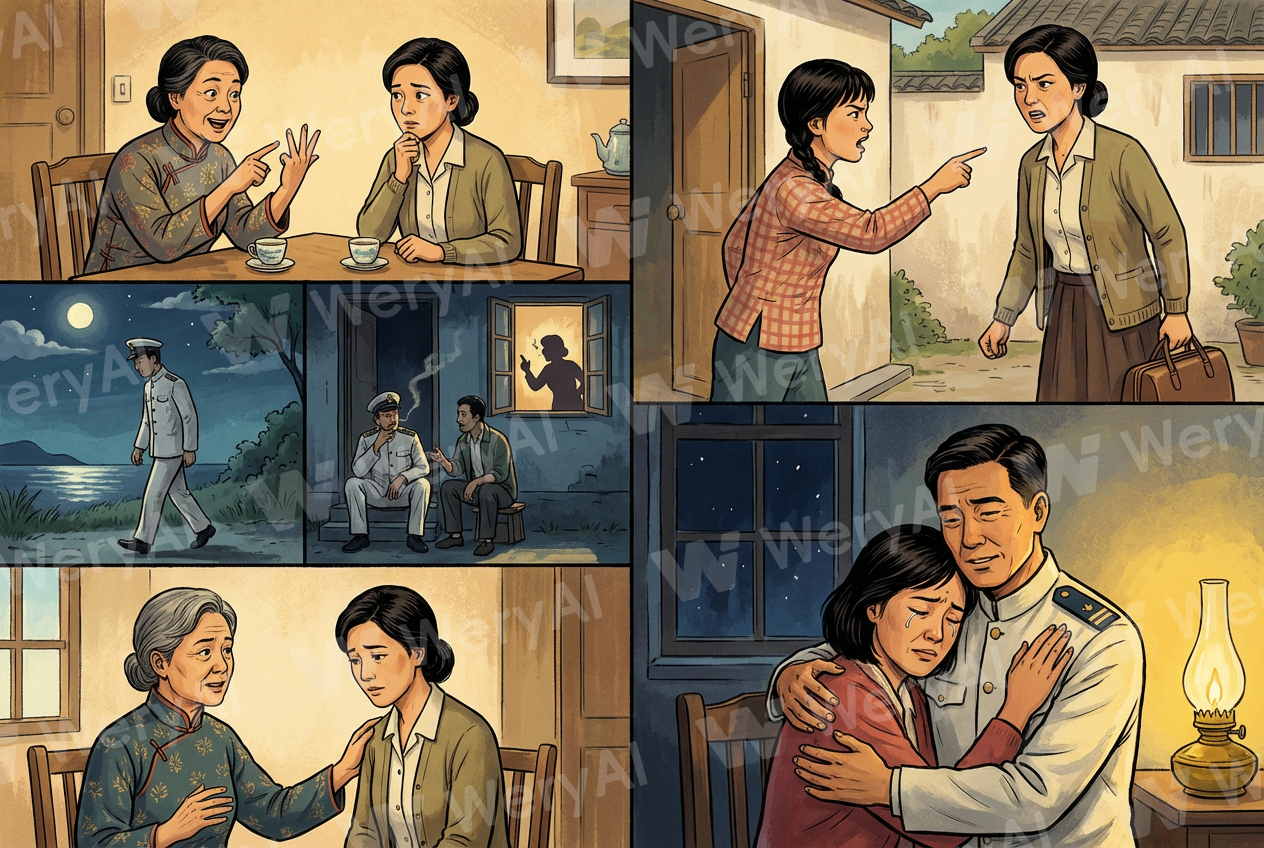 "Romance of Our Parents" TV Series: Episode 19. Zhang Guiying discusses Jiang Dehua with An Jie. Thinking of the fact that Dehua is forty-one and still unmarried, Zhang Guiying advises An Jie to find a partner for her. An Jie had previously approached Ding Jiqun, but since he did not take an interest in Dehua, An Jie helplessly claimed she couldn't find anyone for her. Zhang Guiying, unaware that An Jie had already approached Ding Jiqun, quickly brings him up, believing he and Jiang Dehua are a perfect match. Because An Jie remains silent about Ding Jiqun, Zhang Guiying intentionally reminds her to act quickly to set them up, otherwise, other rivals will compete for him. Hearing Zhang Guiying's words, An Jie becomes very curious and wants to know who these rivals are; Zhang Guiying immediately gets excited and lists the love rivals threatening Dehua one by one. An Jie and Dehua have a quarrel, during which Dehua says An Jie only enjoys a good life because of her brother and casually mentions An Jie's capitalist status. In a fit of rage, An Jie returns to her parents' home. That night, Jiang Defu goes to persuade An Jie to come home, but she refuses. Returning home alone, Jiang Defu has a heart-to-heart with Ding Jiqun and accidentally overhears Ding arguing with his wife later that night. Jiang Defu repeatedly tries to persuade An Jie to return home, and seeing that she still won't budge, he turns to the principal's wife for help. The principal's wife persuades An Jie to return, and it is then that An Jie learns that Jiang Defu's career had indeed been hindered because of their marriage. An Jie returns home and tearfully apologizes to Jiang Defu. (Non-realistic style, no Chinese or English text, character images are Asian)