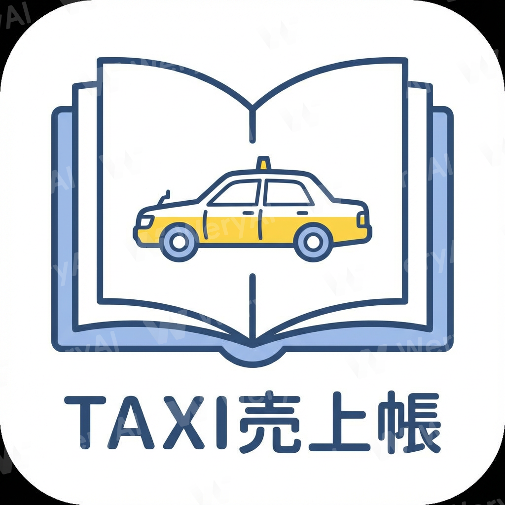 Create a simple app icon. A taxi sales management app. Since the app title is 'TAXI Sales Ledger', draw a side-view taxi inside an open book. Keep it simple.