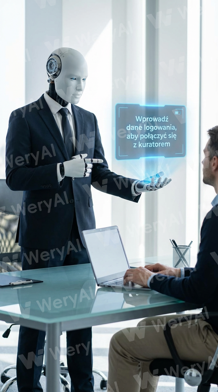 Generate an AI agent in a suit asking for login credentials to connect with a curator.