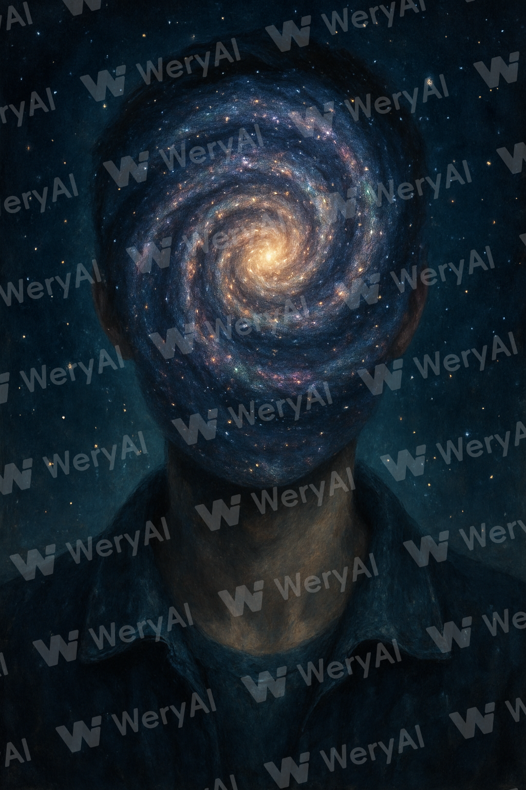 A surreal portrait of a person whose face is a slowly rotating, beautiful spiral galaxy, highly detailed, dreamlike, trending on ArtStation.